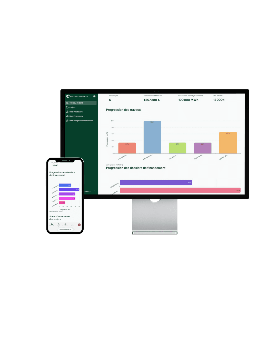 Votre tableau de bord digital vous permet de suivre vos économies, votre ROI et vos tonnes de CO₂ évitées de manière claire et fiable.